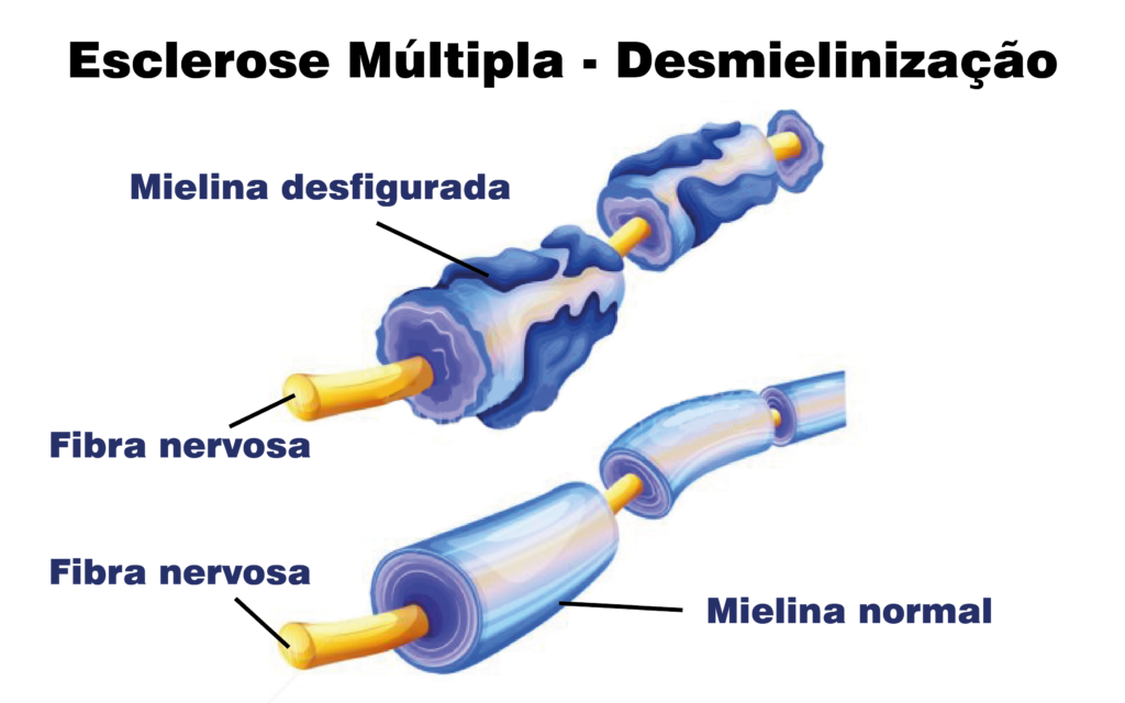 A esclerose múltipla agride a bainha de mielina (capa que reveste os nervos) do sistema nervoso central através dos próprios anticorpos, ou seja, é considerada uma doença autoimune crônica. Assim, o sistema imunológico perde o equilíbrio.